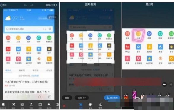 以前的打开方式是这样,先按手机快捷键截屏,然后打开美图秀秀,再次编辑,如下: