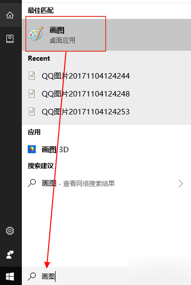 3.同样的按下电脑键盘上面的Print Screen或者Prt Scr键进行截图,然后点击在屏幕左下角的开始键,进行程序搜索,找到画图,打开这个应用。如图所示!