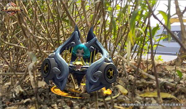 2、启动左下角的AR相机,长按屏幕就可以召唤英雄出场,通过拖拽移动位置,滑动旋转方向,双指滑动缩放大小来调整英雄在相机中位置和大小。