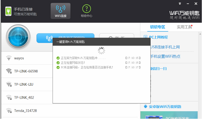 wifi万能钥匙电脑版怎么连接手机?