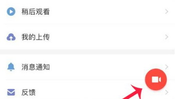 进入“我”选项后,点击右下角红色圆形的图标(如图),即可进入上传视频的界面。