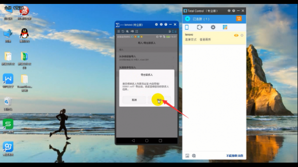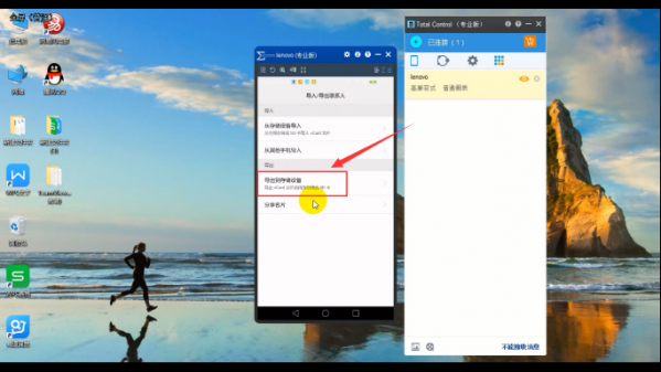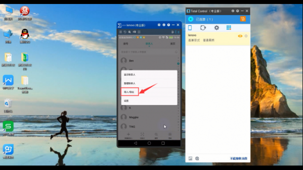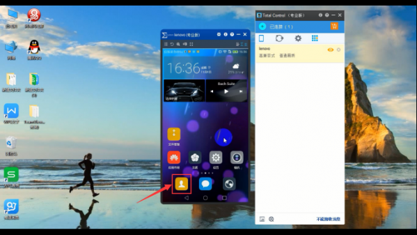 1、将手机和电脑连接后,打开 Total Control, 可以看到手机屏幕投到电脑端的画面,用鼠标操作手机,打开[联系人];