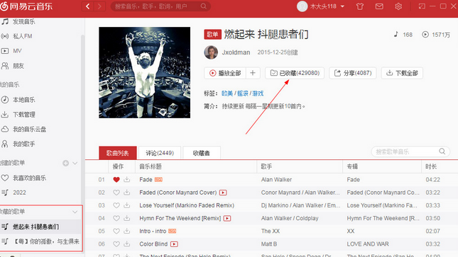 1、打开网易云音乐,选择自己喜欢的歌单点击收藏