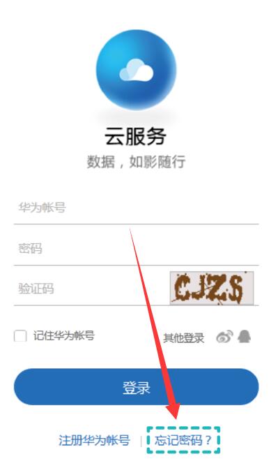 1、仅忘记登录密码,可通过电脑访问华为云服务,点击登录界面的【忘记密码】。重置密码后,使用华为帐号和新重置的密码,重新激活手机。