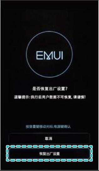 进入如下界面,用音量键上下键,再次选中【恢复出厂设置】,按电源键确认,即可进行恢复出厂设置。请您耐心等待,设备恢复出厂设置后会自动重新启动。
