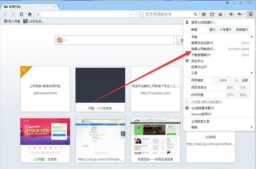 3、然后,就会出现一个快捷菜单,然后在这个菜单上,选择清除痕迹,就可以快捷清除痕迹了!