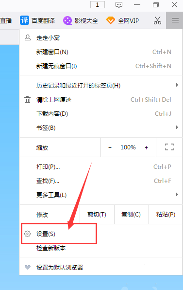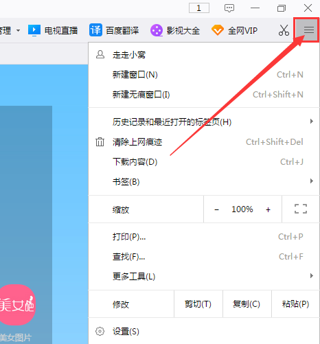 2、点击浏览器右上角三横杠的自定义菜单