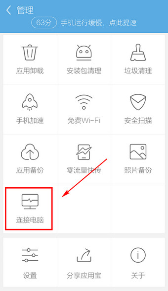 2.滑动找到【连接电脑】进入