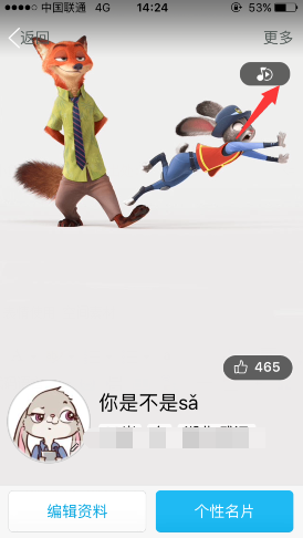 2、在QQ名片中,我们可以看到右上角音乐图标,点击进入;