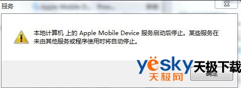 2、若将ipad连接到电脑时,出现“Apple Mobile Device服务启动后停止”这一问题,如下图所示,请大家将电脑“任务管理器”中的WerFault.exe这项进程关闭,然后再重启Apple Mobile Device服务。如果大家想对这一问题有更深的了解请自行查阅我的另一篇经验相关经验。