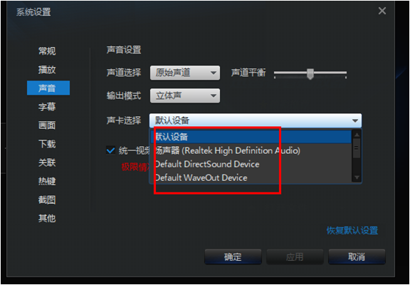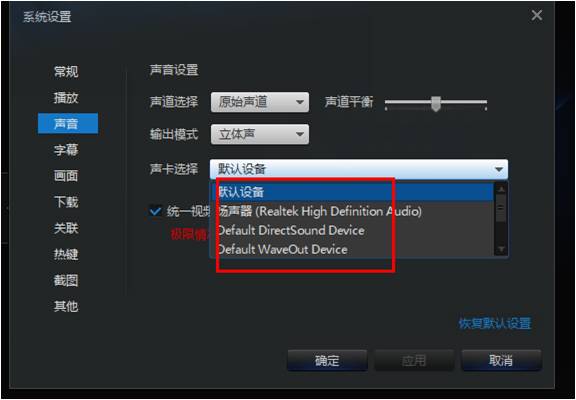 4、可能是声卡的问题,请打开迅雷看看播放器-主界面右键-设置-声音-声卡选择,每一个都试一下。