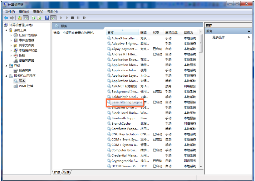 在右侧列表中找到【Base Filtering Engine】,如图,