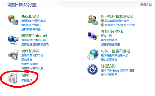 2、打开“控制面板”后,找到“程序”,点击“卸载程序”;