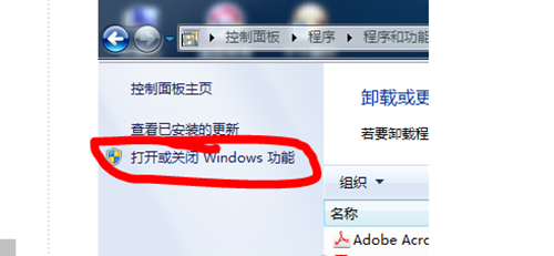 3、在打开的“程序和功能”页,点击左侧的“打开或关闭windows功能”;