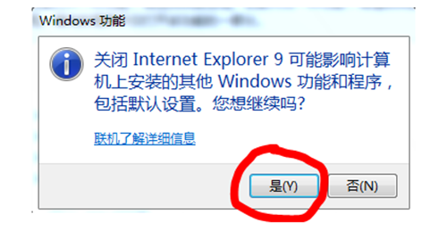 5、取消对钩后,系统会弹出提示窗口,如果确认要卸载的话,就点击“是”。点击“是”确定后,系统就会自动关闭IE浏览器了。