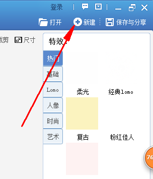 第一、打开美图秀秀,点击右上角的:“新建”