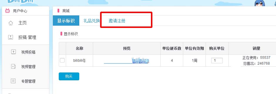 6、进入商城之后在最上方有选项,找到“邀请注册”一栏之后单击打开就可以了!