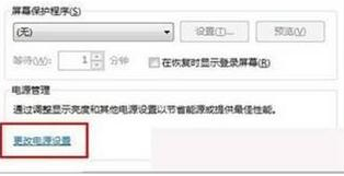 2、接着在屏幕保护程序设置页面中,选择更改电源设置,如下图所示:
