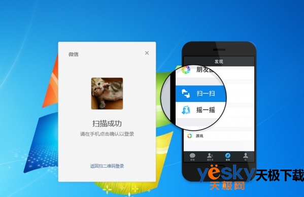 2、然后在扫描之后我们可看到桌面显示了我们的头像,手机显示了“windows登录确认”。