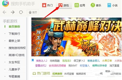 6、点击“游戏”可以把自己喜欢的游戏安装到电脑上。