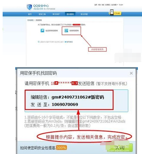 2.根据提示的信息,发送内容,找回密码就行了。