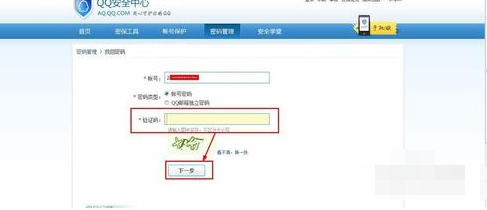 页面如图,其中要求输入验证码,输入验证码即可进行下一步了。