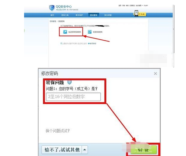 2.进行密保问题验证。