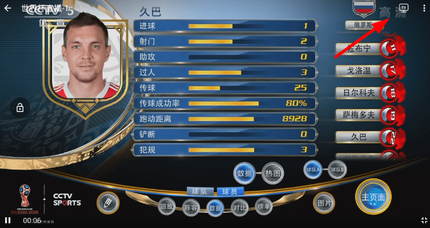 3、而且在进入世界杯的直播页面后,我们还可以通过右上方的投屏按钮,将世界杯直接投屏到电视上观看,非常方便!