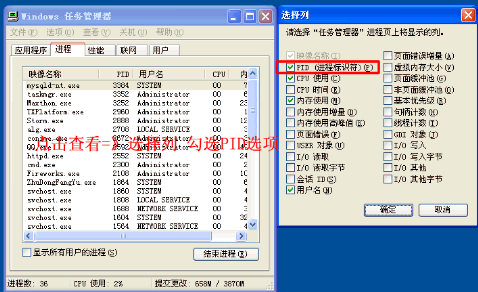 首先打开 任务管理器,然后点击查看=》别表项 勾选 PID选项