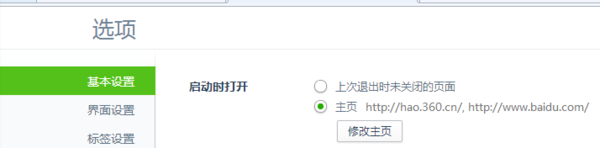3、左侧点击基本设置,右侧点击修改主页按钮;
