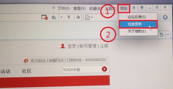 1. 打开猎豹浏览器,将其关系至最新版本,如下图: